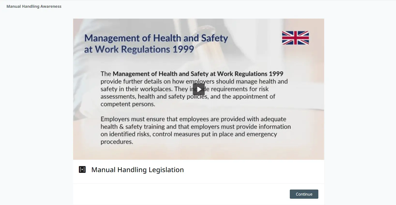 Manual Handling injuries are among the most common types of work-related accidents in the UK. This course is designed to increase employee awareness of Manual Handling risks and provide practical advice on how to keep safe at work.